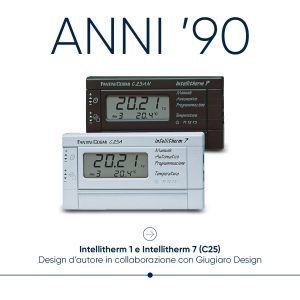 Fantini Cosmi continua a segnare primati: negli anni ’90 è la prima azienda ad abbinare elettronica avanzata e design d’autore, affidando a Giugiaro Design la creazione del nuovo Intellitherm C25.