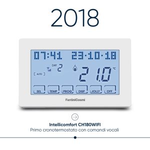 L’anno successivo arriva Intellicomfort CH180WiFi, con comandi vocali integrati compatibili con Amazon Alexa™. Fantini Cosmi è tra i primi brand a offrire un’interazione naturale con i propri dispositivi: basta la voce per gestire comfort e risparmio.