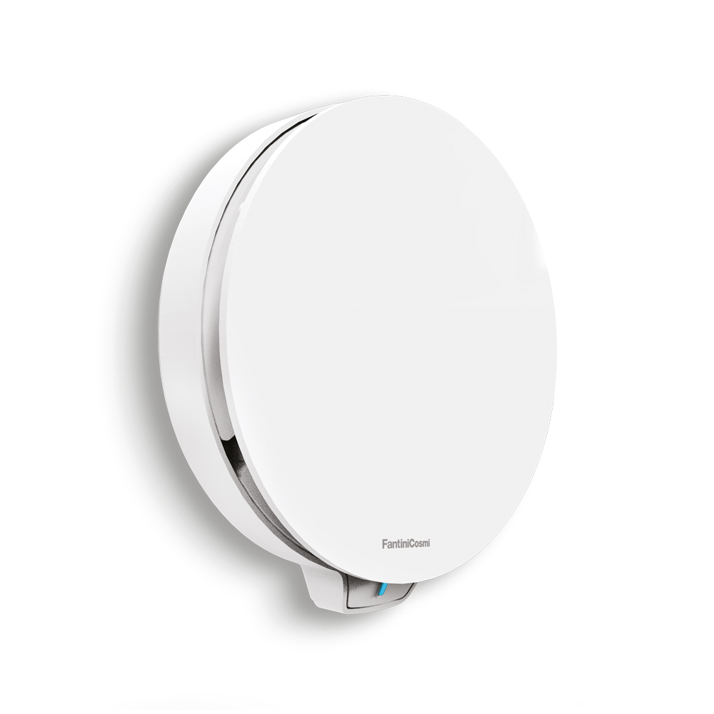 When set as an additional unit, the airflow direction can be set as concordant or discordant to the main unit. All units communicate via Bluetooth Low Energy protocol and are managed through the Intelliclima+ app. They can be installed in large or multiple rooms (max signal range approx. 8–10 m in open space).