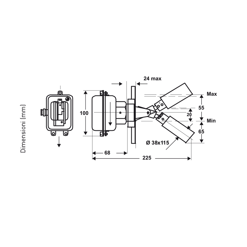Code Float type Level differential mm Maximum operating pressure Maximum liquid temperature Connection Protection rating AD52W stainless steel 20 ÷ 60 10 bar 100 °C G 1 1/4 IP54 -