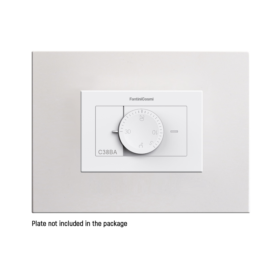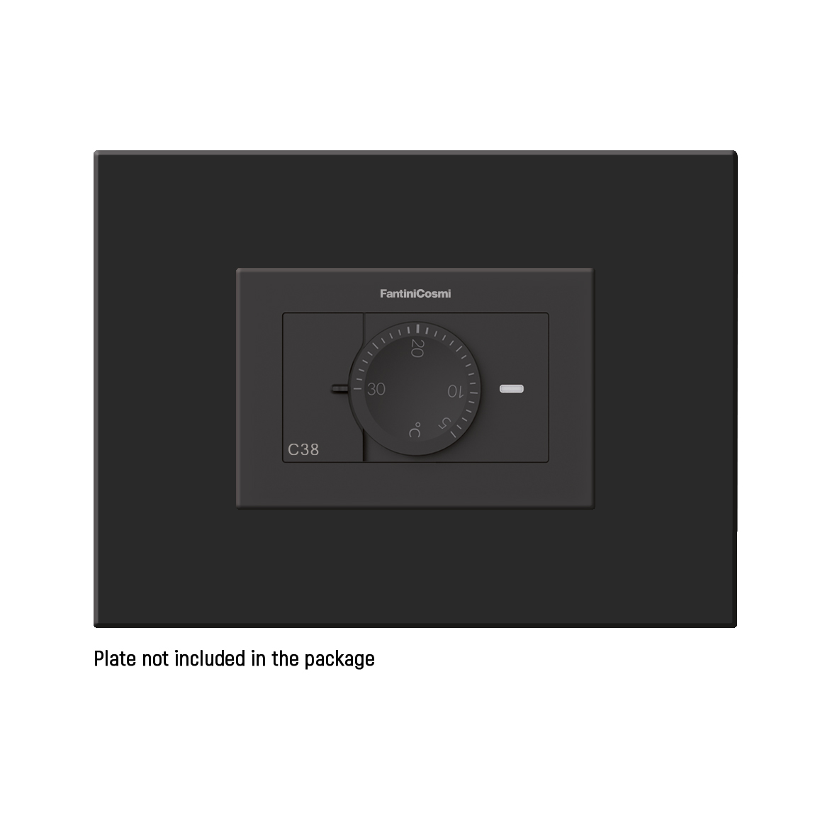 CODE COLOR TEMPERATURE RANGE DIFFERENTIAL * POWER SUPPLY CONTACT RATING C38 Anthracite 5 ÷ 30 °C 0.5 K 2 batteries AAA 1,5 V 5(3)A-250Vac C38BA White 5 ÷ 30 °C 0.5 K 2 batteries AAA 1,5 V 5(3)A-250Vac * Differential values are referred to a thermal gradient of 4K/h -